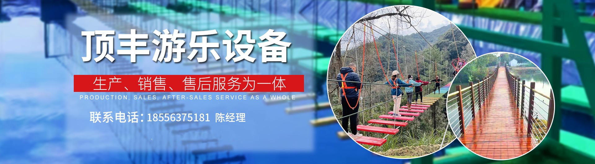 安徽頂豐游樂設備有限公司是國內大、中、小型游樂設備生產廠家,坐落在旅游城市安慶宿松,是專注旅游景區、生態園、山莊、農場、公園、游樂場、拓展基地的游樂設備公司。公司主要提供攀巖墻、滑索、吊橋、木質滑梯、水上拓展項目、叢林穿越拓展、滑道、拓展基地設備等游樂設施的制造、安裝、維修及銷售業務。
